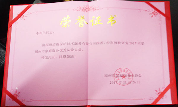 福州市商務(wù)局處長、福州市婦聯(lián)部長及福州市家庭服務(wù)業(yè)協(xié)會會長共同為20名優(yōu)秀家政(含潔麗家政)從業(yè)人員頒發(fā)榮譽證書。